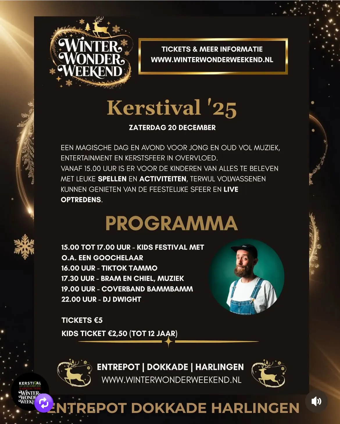 Kerstival’25 is een evenement dat plaatsvindt tijdens het Winter Wonder Weekend op 18-19-20 december in het Entrepotgebouw in Harlingen.